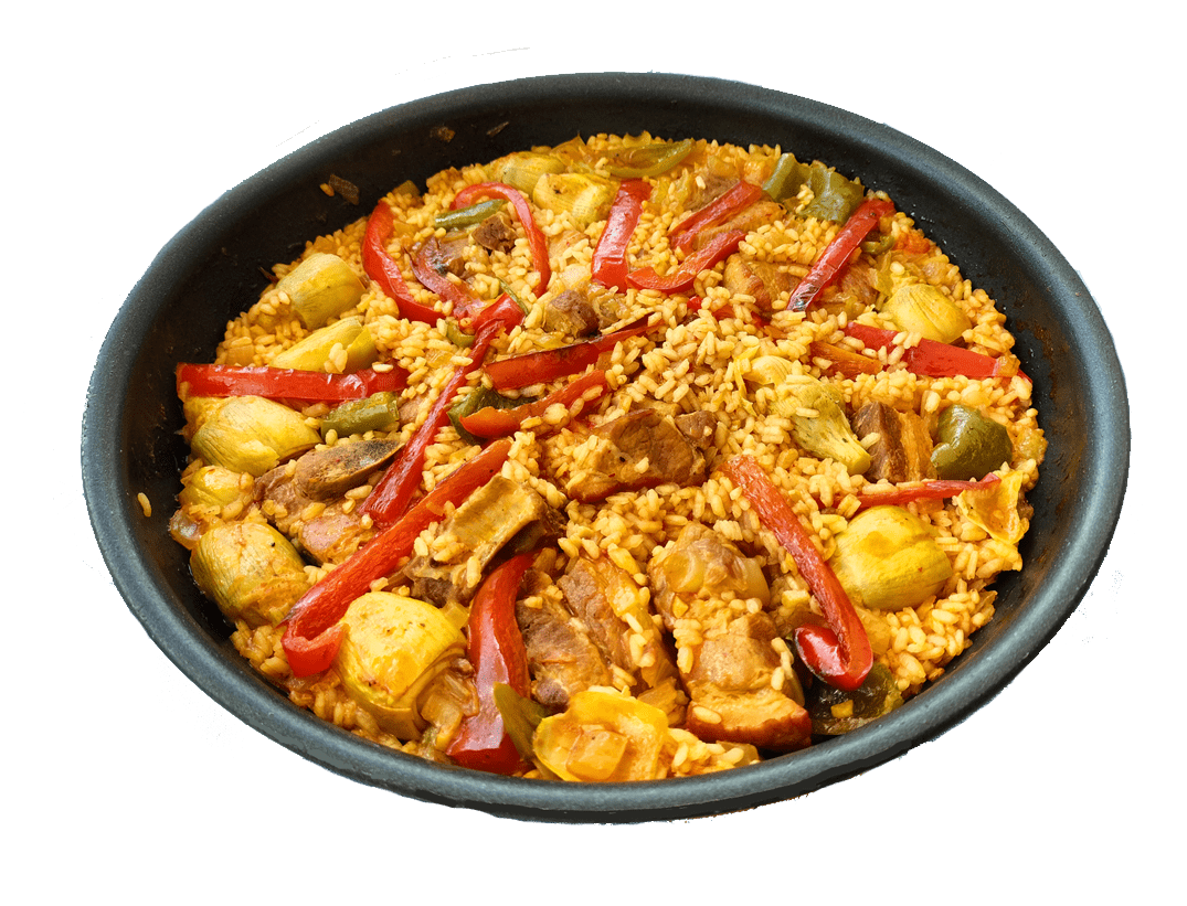 Arroz, conejo, pollo, garrofón, alubias verdes, etc..